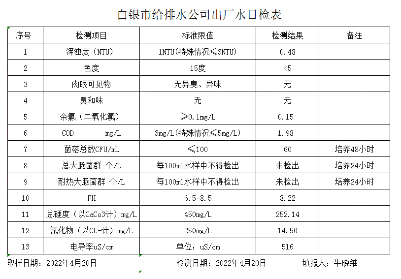2022年4月20日水質(zhì)檢測(cè)報(bào)告