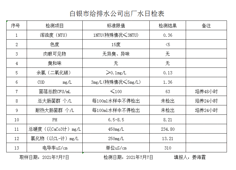 2021年7月7日水質(zhì)檢測(cè)報(bào)告